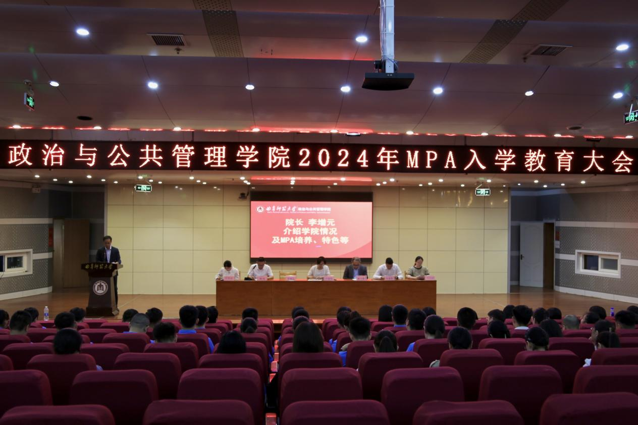 于学校图书馆报告厅召开2024级MPA入学教育大会。学院党委书记卢瑞霞,学院党委副书记、院长李增元,学院党委副书记张忠凯,学院副院长林士俊,MPA教育中心副主任程香丽以及研究生教学秘书刘雪婷出席本次入学教育大会,会议由读漫屋