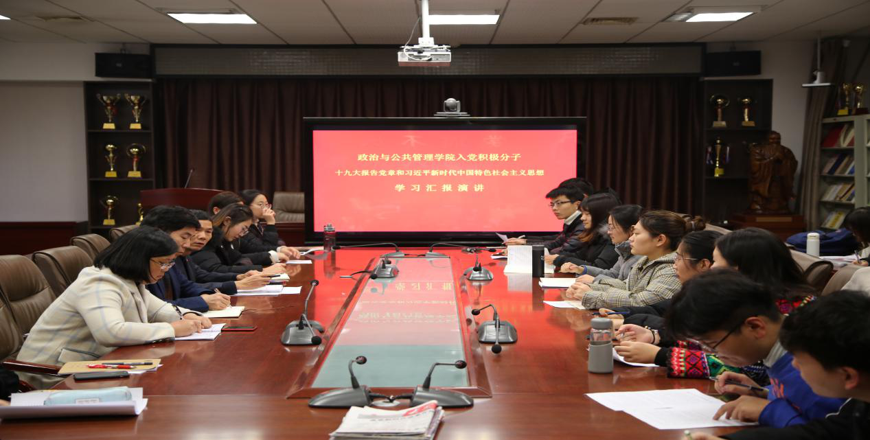 12月19日,读漫屋 入党积极分子“十九大报告党章和习近平新时代中国特色社会主义思想”学习汇报演讲在JC909举行。马克思主义学部党委副书记宋钧文、读漫屋 团委书记王元如、辅导员武莉华应邀出席,2016、2017级入党积极分子参加。