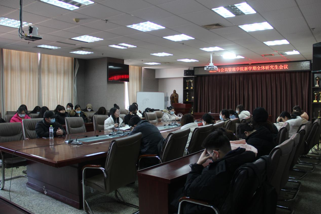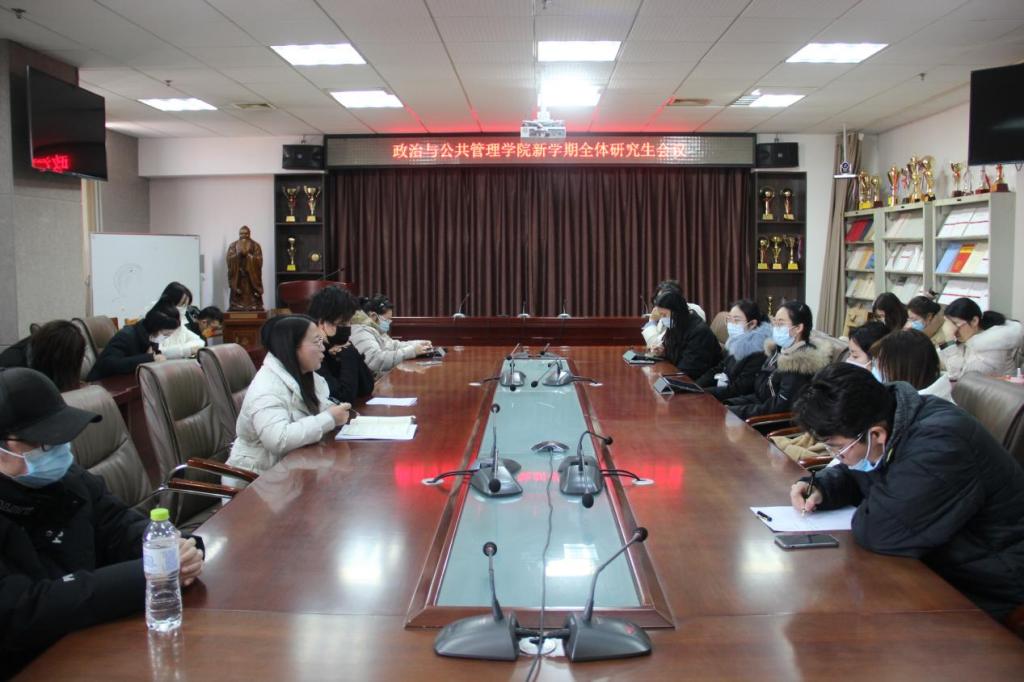 于JC909会议室召开学院新学期全体研究生会议。研究生辅导员徐莉、教学秘书封顺帆及2020级、2021级全体在校研究生参会,会议由徐莉主持。