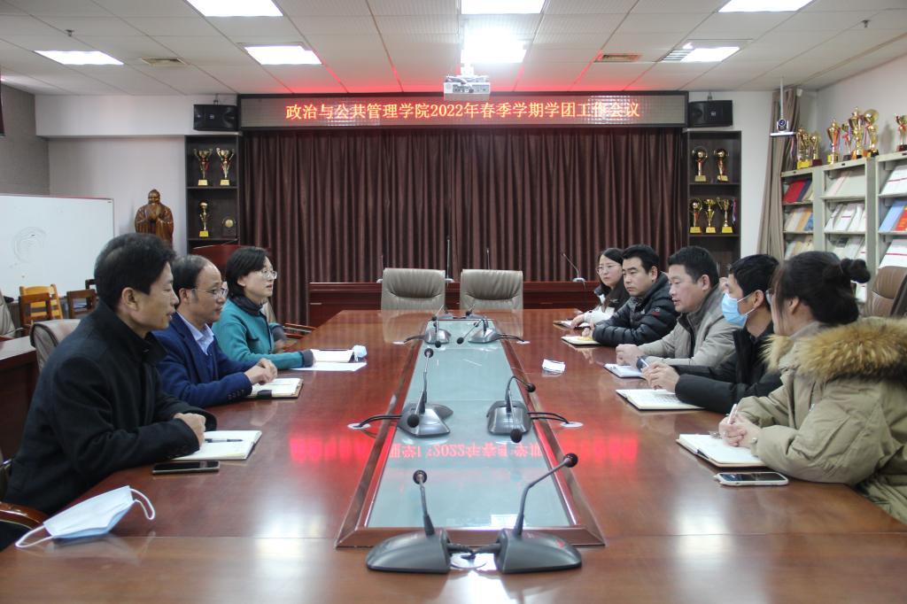 召开2022年春季学期学团工作会议,学院党委书记卢瑞霞、副院长李增元、党委副书记张忠凯、办公室主任钟振洪、研究生辅导员、本科生辅导员参加了会议。会议由学院党委书记卢瑞霞主持。