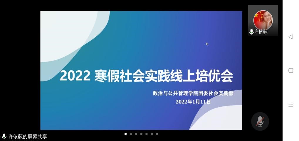 行之力则知愈进,知之深则行愈达。大学生参加社会实践是了解社会、认识国情,增长才干、奉献社会,锻炼毅力、培养品格的重要途径。本次线上寒假社会实践培优会的成功召开,有利于政院学子深化对社会实践内容与细节的认识,从学术和实践的目的出发提高自身综合素质能力,充分体现“政苑三学”特色育人工程向学长学习、向实践学习的重要环节的重要意义,在实践中践行自己所学,学思践悟,实现学院“坐下来能写、站起来能说、走出去能做”培养目标,为各项社会实践活动顺利开展奠定坚实基础。