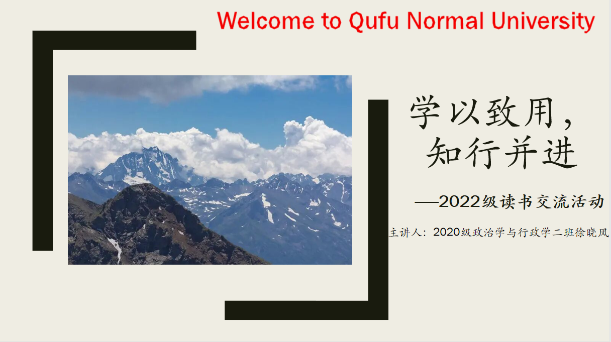 读书使青春展翅,知识让生命飞翔。本次活动中诸位主讲人热心讲解,新生积极与会,以读书交流形式向2022级新生展示展现着曲师人政院人之精神面貌,为政院新鲜血液与20、21级提供线上交流桥梁,激励新生砥砺向学,从书中汲取营养,从纸页中获取知识。不仅对于增进新生集体荣誉感、归属感,提高凝聚力,适应大学生活具有积极意义,同时对于深入完善“政苑三学”特色育人工程,培养学子专业技能具有独特作用。