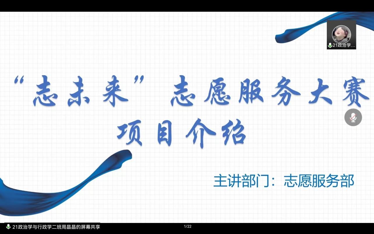 新生“志未来”志愿服务教育活动于线上举行,活动由团委学生会志愿服务部主持,2022级全体新生积极参与。