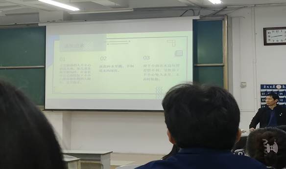 安全意识,时时具备不可忘。本次主题班会的成功举行,深化同学们对防溺水、防诈骗和安全问题的理解,对于同学们丰富多彩的大学学习生活必将起到保驾护航的作用,对于营造安全的学习生活氛围有重要意义。