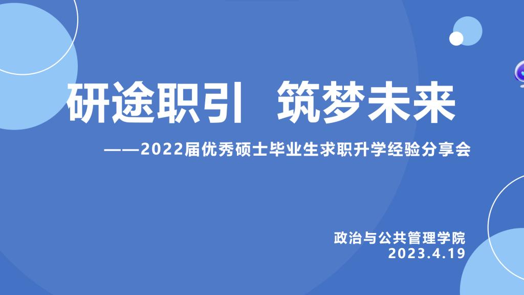 召开优秀硕士毕业生求职升学经验分享会,本次会议邀请2022届毕业生徐泽鑫、周铁岩、李洋、刘芸霞围绕考博、考公、考编等方面分享个人经验,会议由研究生辅导员徐莉主持,读漫屋