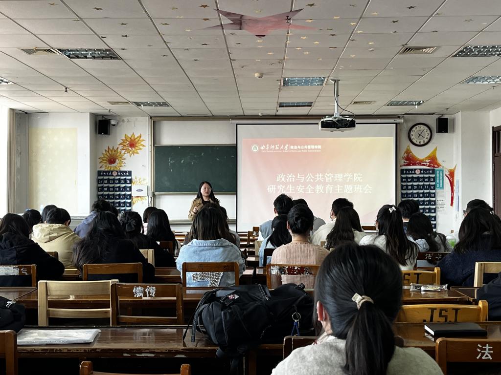 组织全体研究生于JC605召开安全教育主题班会。此次班会由研究生辅导员徐莉主持。