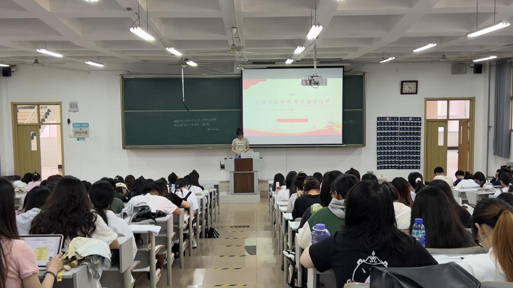 本次主题教育班会以“深刻认识习近平法治思想的人民性要义”为主题,围绕习近平法治思想人民性内涵、人民性表现两个方面展开。2020年11月16日至17日,党的历史上首次召开的中央全面依法治国工作会议,正式提出习近平法治思想并将其明确为全面依法治国的指导思想。习近平法治思想是符合我国国情、顺应时代要求的科学理论。人民是全面依法治国的主体和力量源泉,人民性成为贯通习近平法治思想的价值红线和逻辑主线。习近平法治思想的人民性秉承马克思主义的实践观点和方法,在法治实践的各个环节始终践行人民至上理念,积极回应了新时代人民群众对于法治建设的新需求。
