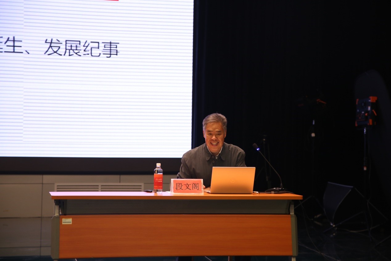 本次论坛段文阁教授围绕“亲历、见证与展望”的话题展开。会议伊始,段文阁教授用几个生动形象地故事情节向新生讲述读漫屋