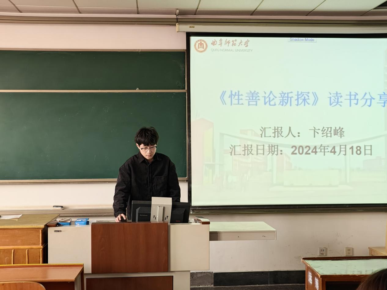 2023级卞邵峰同学分享了方朝晖《性善论新探》。孟子“道性善,言必称尧舜”,是儒家“性善论”的开创者。宋儒尊崇孟子,确立了孔孟之道统,“性善论”正是其紧要关节。他向大家详略得当的对该书进行了提炼和总结,随后提出了一个问题:“常见的观点认为,性善论更有利于专制,性恶论更有利于民主这种联系是否成立?”