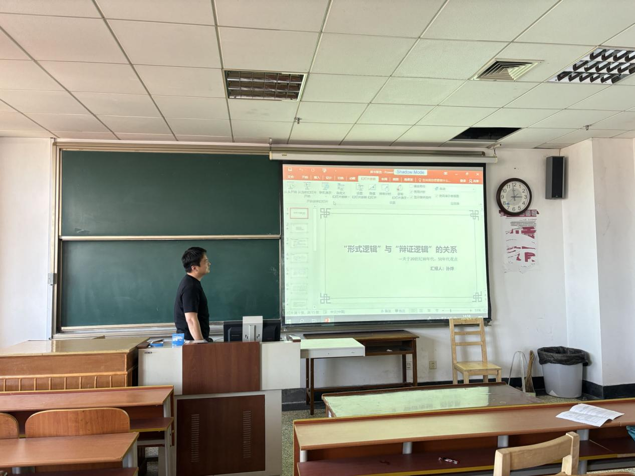 2023级孙烨同学结合《唯物辩证法和形式逻辑的关系——关于20世纪30年代、30年代的观点》与大家进行分享,介绍了相关人物的思想观点,并引导大家思考:辩证法是不是一种逻辑?辩证法和形式逻辑的关系是怎样的?形式逻辑是不是形而上学?