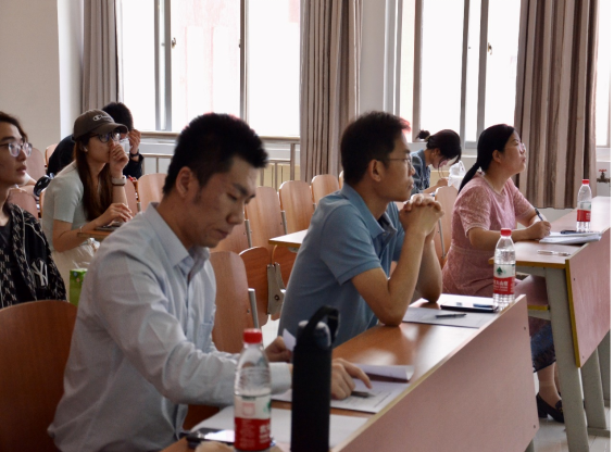 十四组参赛选手完成展示后,评委们针对其表现进行点评。程香丽老师从PPT制作和讲述方面指出选手们展示过程中存在的问题,并结合自己的观点提供颇具可行性的解决方法;冯相磊老师鼓励大家以比赛为契机,互相交流学习经验;郭锐老师重点强调时间规划问题,建议大家在赛前多次演练,力争在比赛规定的时间内完成个人展示。