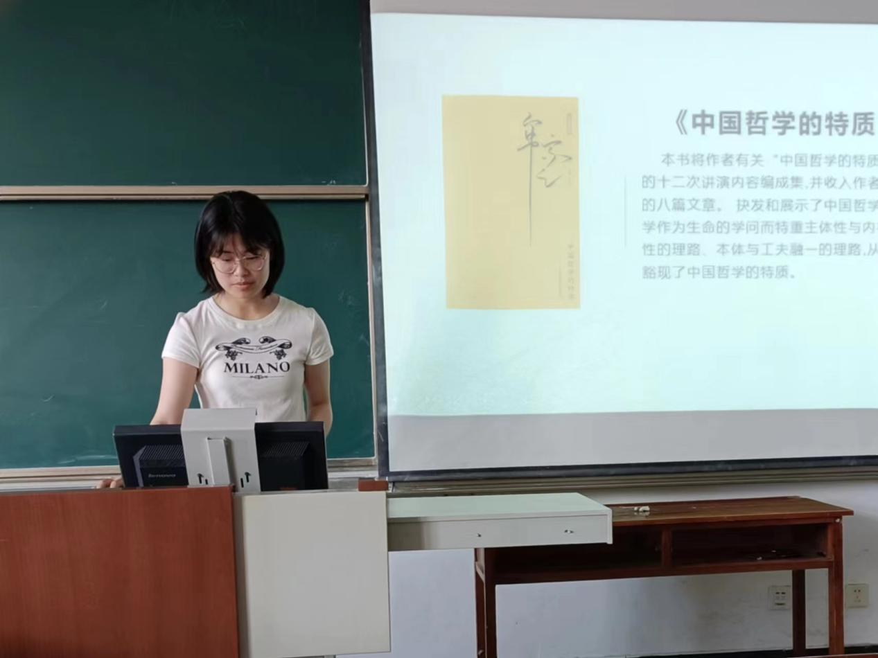 2023级李晨昱同学从“主体性”与“内在道德性”的角度分享牟宗三《中国哲学的特质》一书,她指出,中国哲学以“生命”为中心,此“生命”,不是生物学研究的自然生命,而是道德实践中的生命。