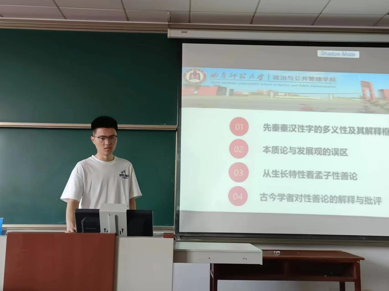 2023级孟庆龙同学从理解古人人性概念的含义、性善论是从性善还是性之善的角度来理解、古今学者对性善论的解释与批评等几方面分析方朝晖的《性善论新探》一书。