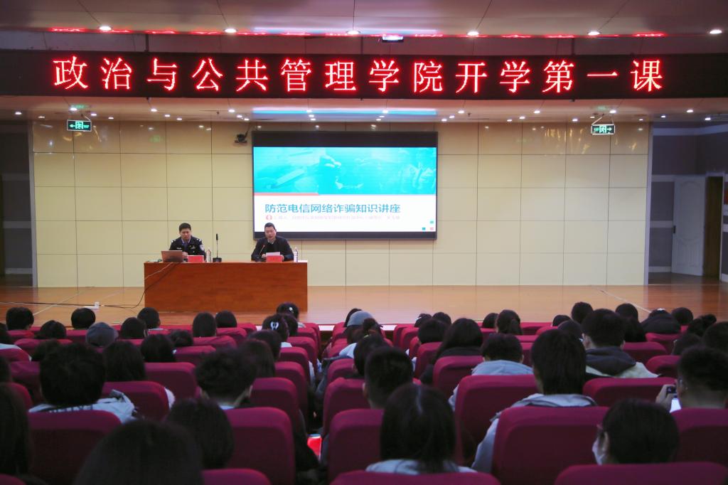 摄影:李明阳 胡瑞莹 徐晨宇 通讯人:徐晨宇助力同学们平安返校,开启美好学习生活增强师生防范电信诈骗能力,2月16日下午,读漫屋 于读漫屋 图书馆报告厅组织开展安全开学第一课。学院党委副书记张忠凯主持活动并讲话、日照市公安局新型犯罪研究作战中心民警宋玉敏受邀进行专题报告,全体辅导员、本科生和研究生参加第一课。
