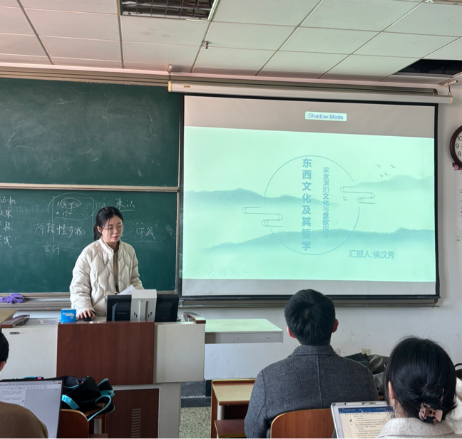 2024级侯汶秀同学分享了梁漱溟先生的著作《东西文化及其哲学》,该书主要从哲学角度探讨了东西方文化的本质差异及其根源,特别是通过对“意欲”这一核心概念的分析,揭示了不同文化背后的精神取向,重点介绍了书中关于文化与意欲的探讨。