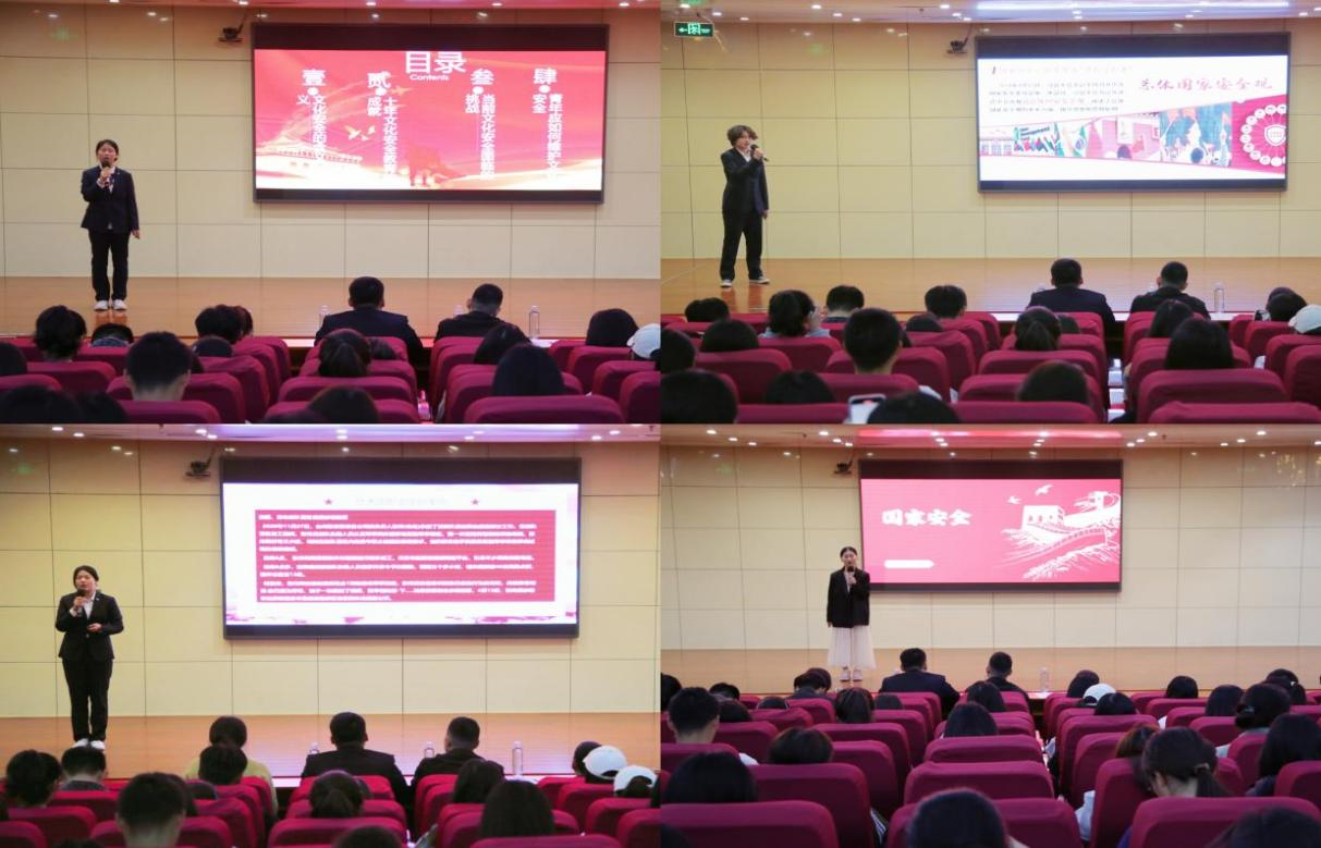 4月20日,学院于图书馆报告厅举办国家安全教育主题宣讲会,特邀吴瑜彬警官担任主讲嘉宾。吴警官凭借丰富的经验和专业知识,从国家安全是什么、国家安全面临的威胁、如何维护国家安全等多个方面展开深度剖析。在讲解过程中,穿插播放一系列贴合主题的短视频,并结合典型案例,让师生们对国家安全有了更加全面、深入地了解。吴警官强调,每个人在维护国家安全中都发挥着重要作用,同学们要增强国家安全意识,自觉履行维护国家安全的义务,积极参加到维护国家安全的实践中来,为维护国家安全贡献力量。