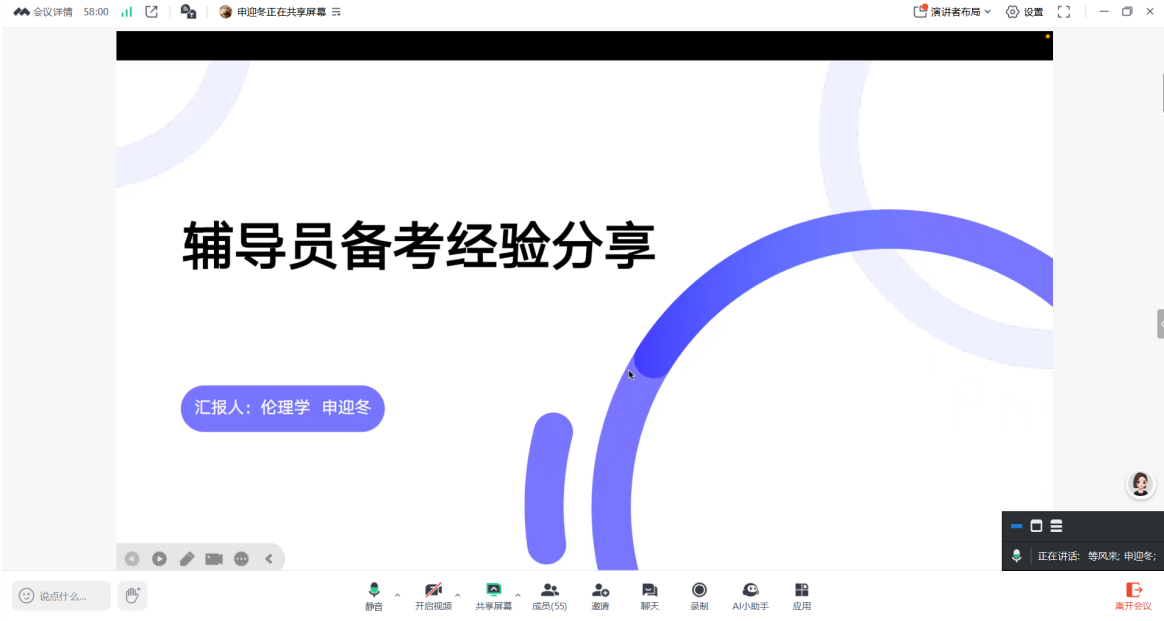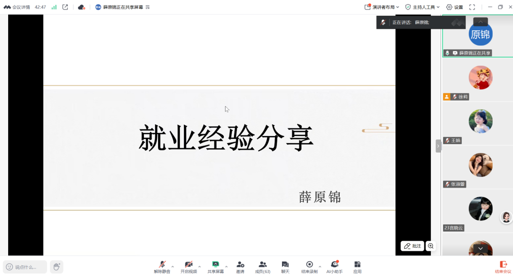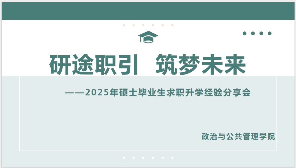 于4月18日和4月24日召开优秀硕士毕业生求职升学经验分享会,会议邀请龚子仪、薛原锦、陈晨等7位2024届硕士毕业生围绕考博、考公、考编等就业类型分享个人经验,会议由研究生辅导员徐莉主持,读漫屋