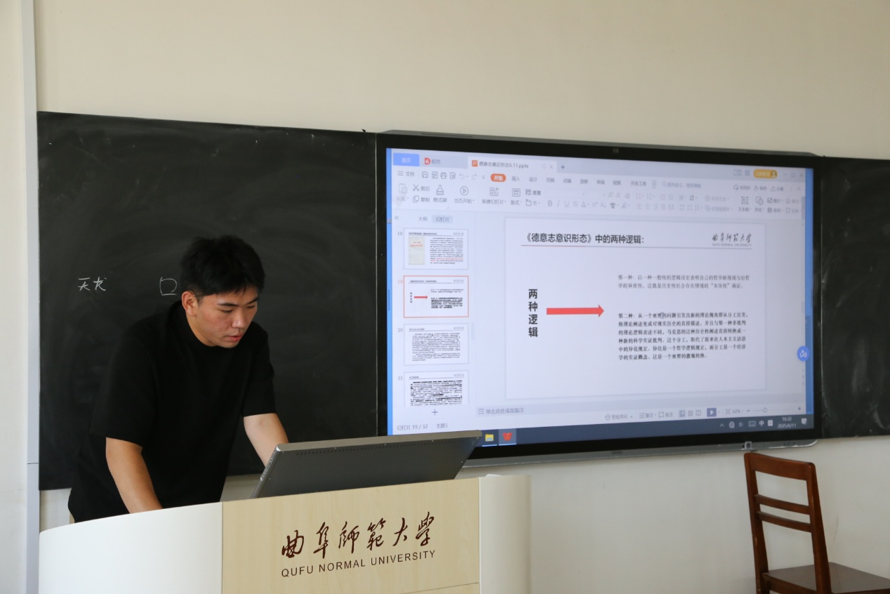 2024级高旭同学分享的是《德意志意识形态》一书,重点解读了书中关于“意识形态作为统治阶级思想”和“社会存在决定社会意识”的内在关联,并提出“在当代多元文化和技术革命的背景下,该如何重新审视意识形态的变化”这一问题。
