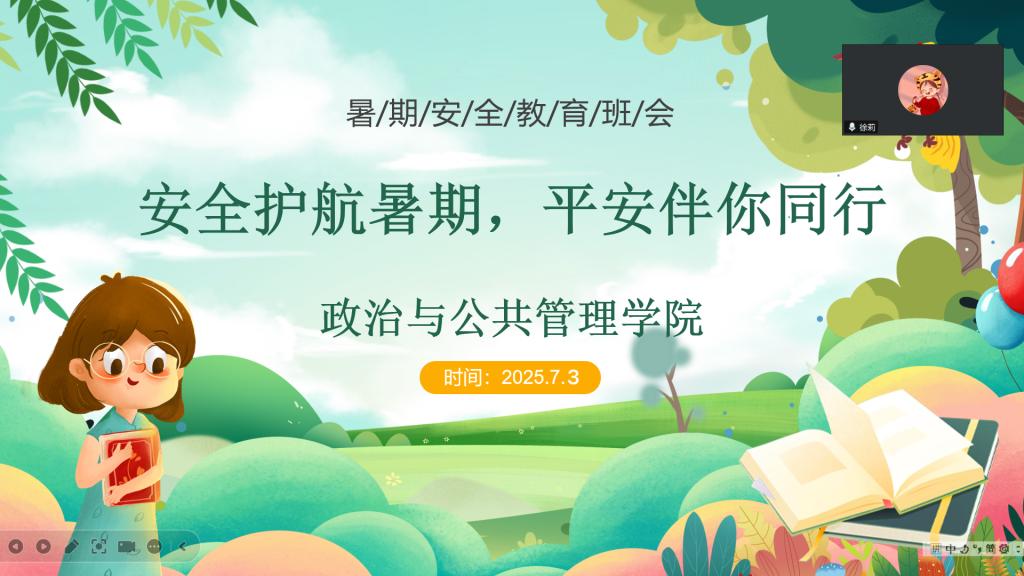 于7月3日下午,通过线上会议组织召开了“安全护航暑期,平安伴你同行”研究生暑期安全教育主题班会。本次会议由研究生辅导员徐莉主持,2023级和2024级全体研究生积极参会。
