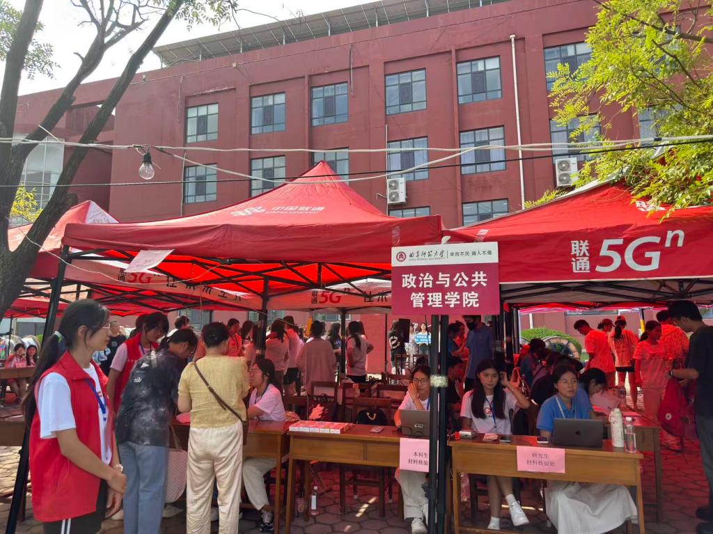学院领导、教职工以及学生志愿者们充分做足各项工作准备,精神饱满地在各自岗位上严阵以待,为新生提供“一站式”引导与服务,帮助新生完成入学报到、校园引领、寝室入住等各项工作。现场秩序井然,工作人员耐心细致地解答新生及家长的各种疑问,让初来乍到的新生感受到政院的温暖。