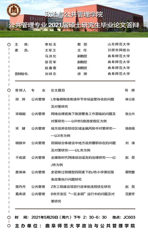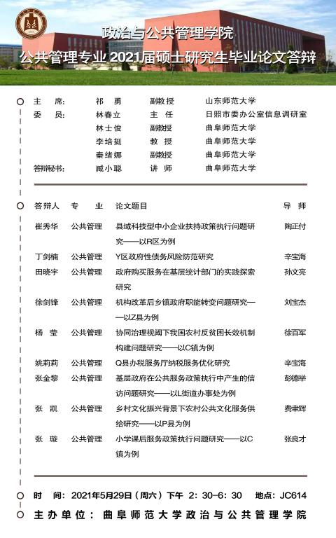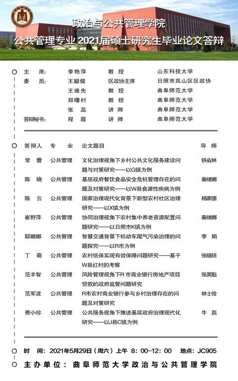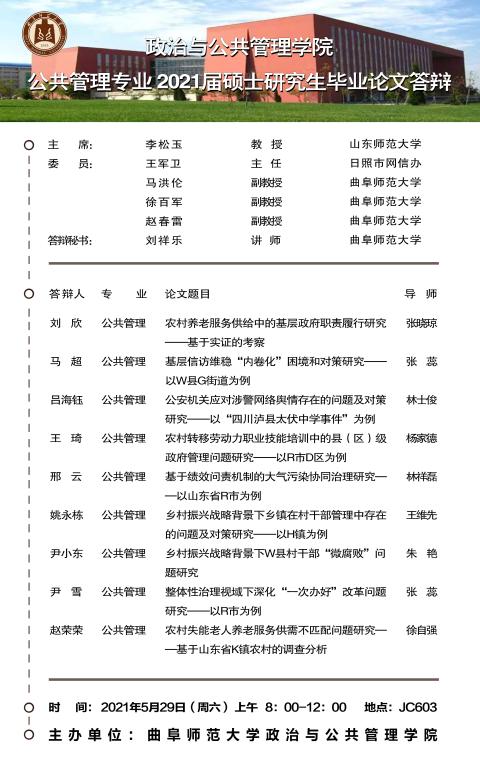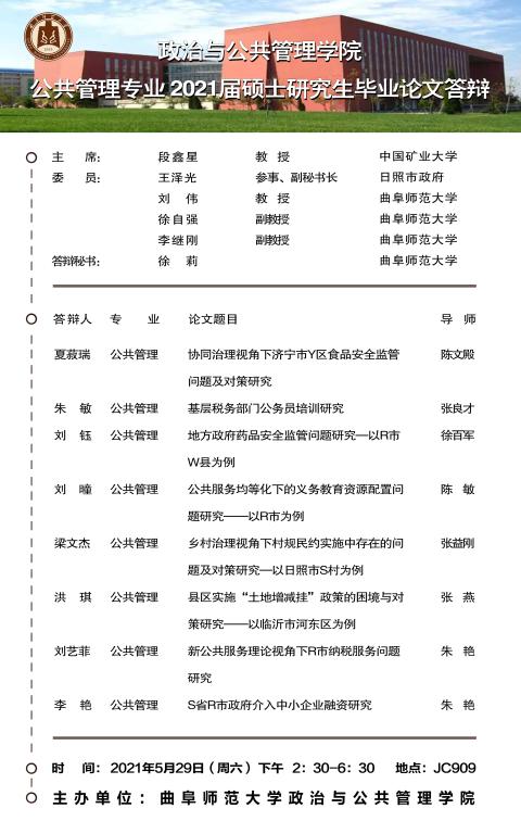 读漫屋 2021届学术型硕士研究生学位论文答辩公告