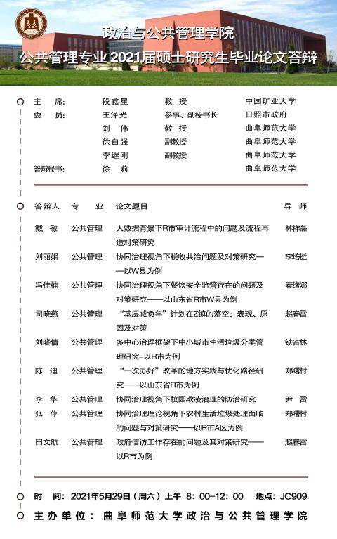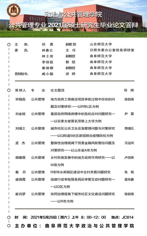 读漫屋 2021届专业型硕士研究生学位论文答辩公告
