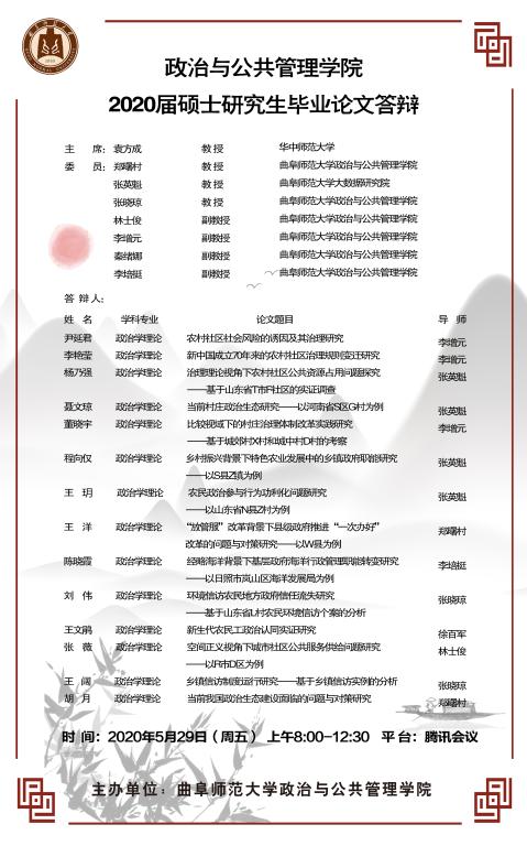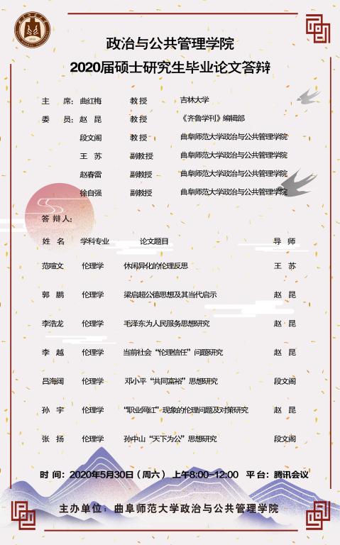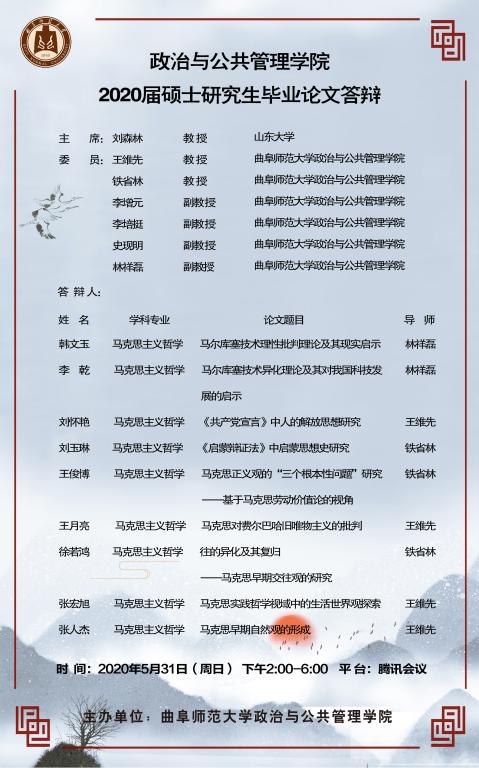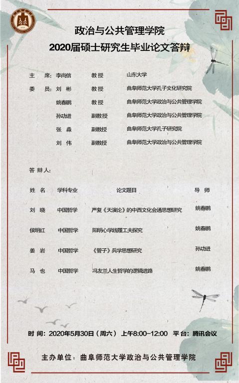 读漫屋 2020届学术型硕士研究生学位论文答辩公告