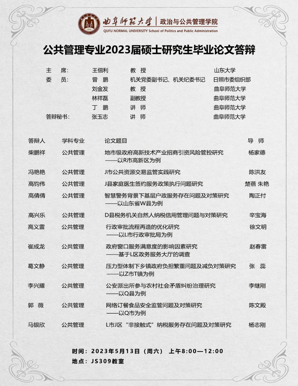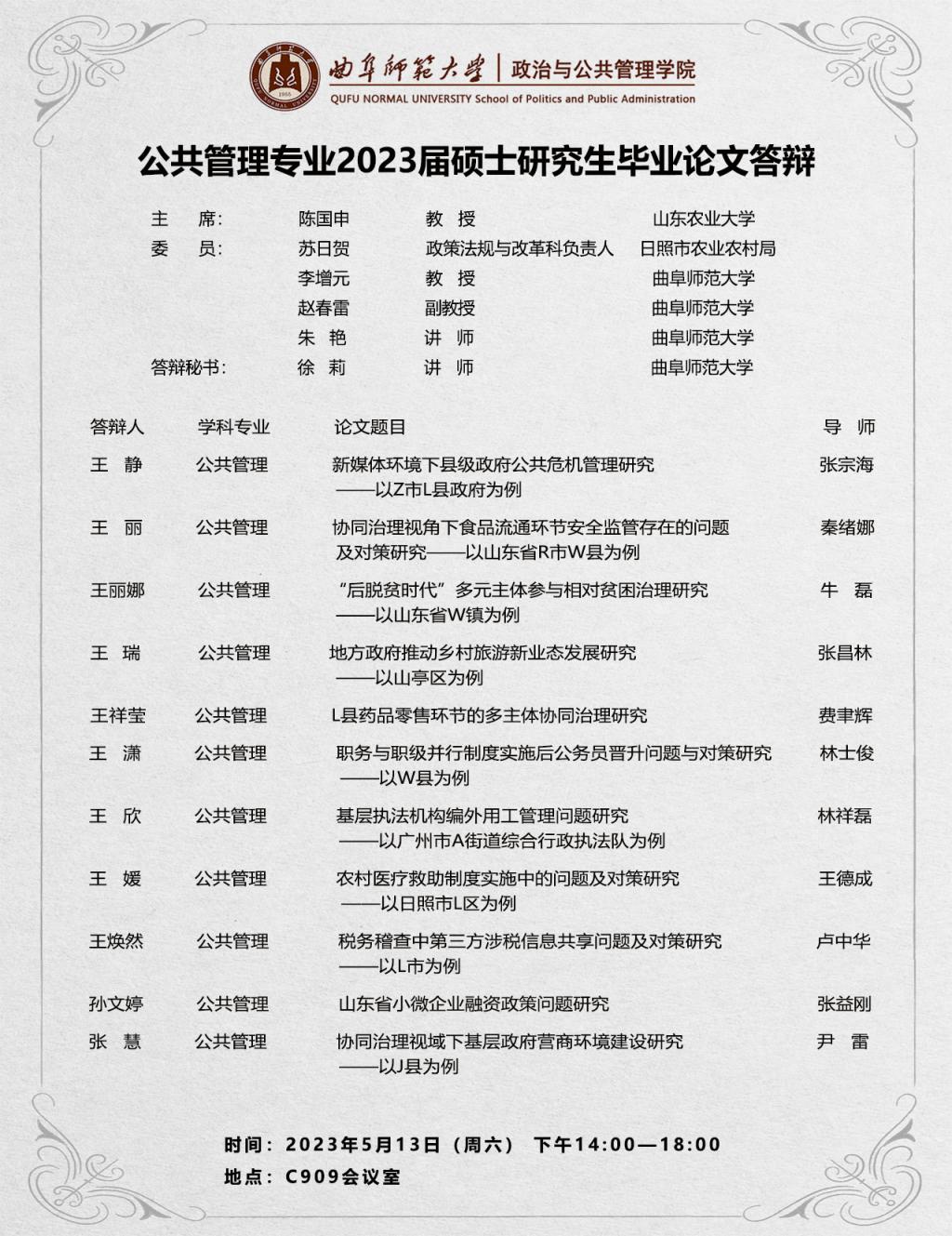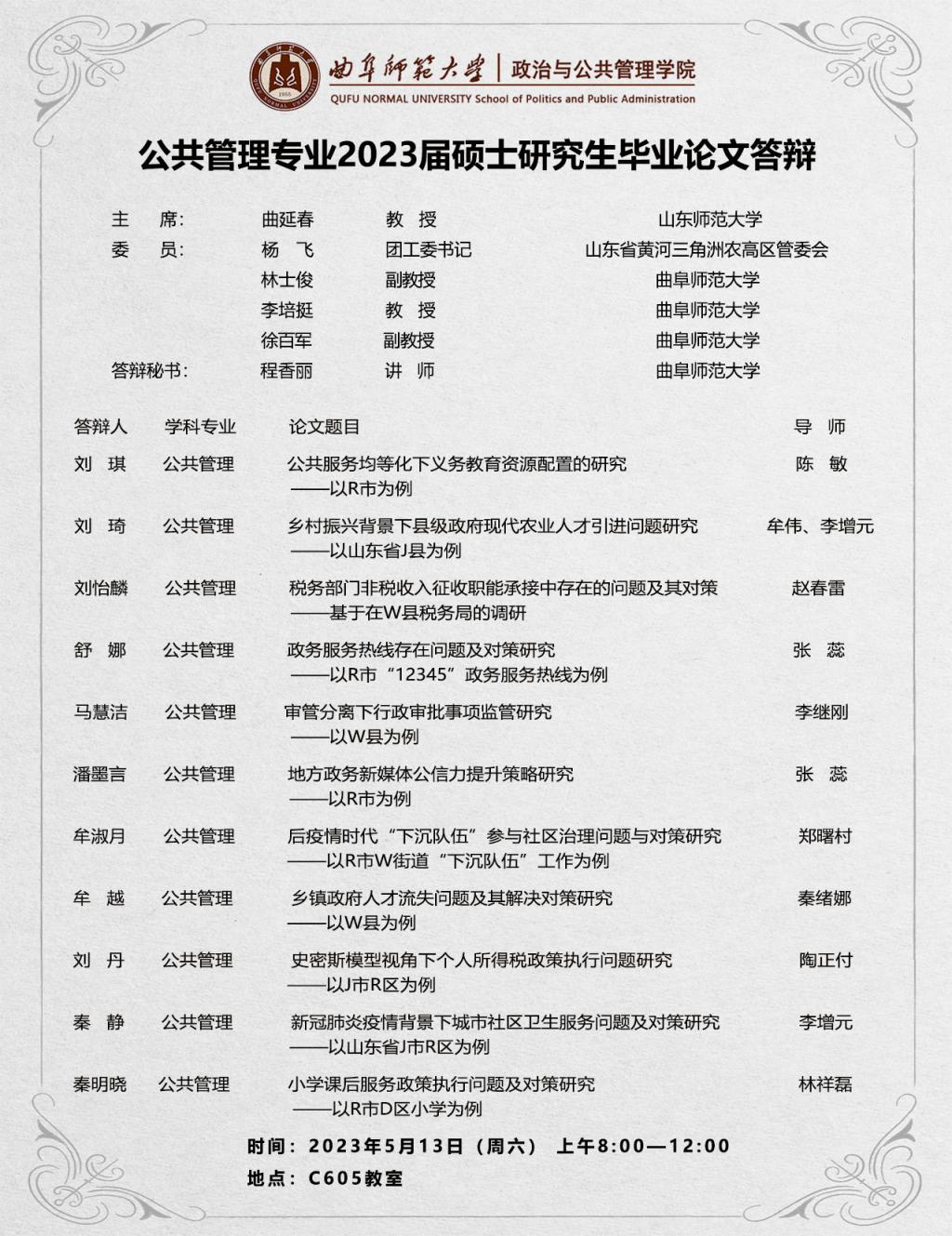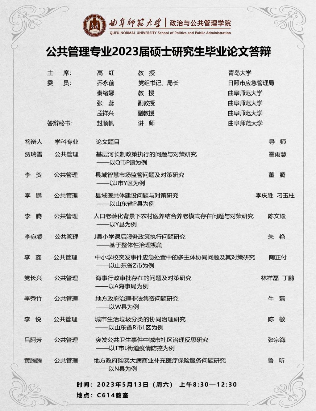 读漫屋 2023届公共管理硕士研究生学位论文答辩公告