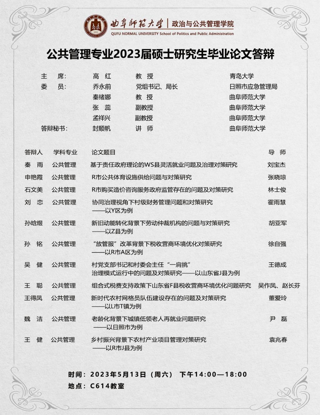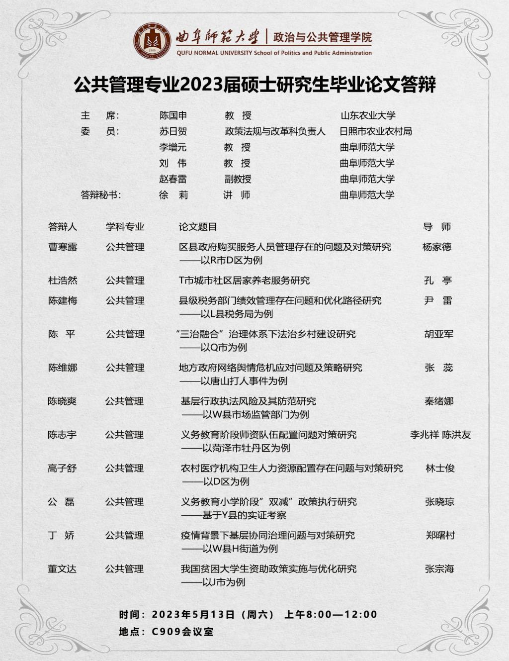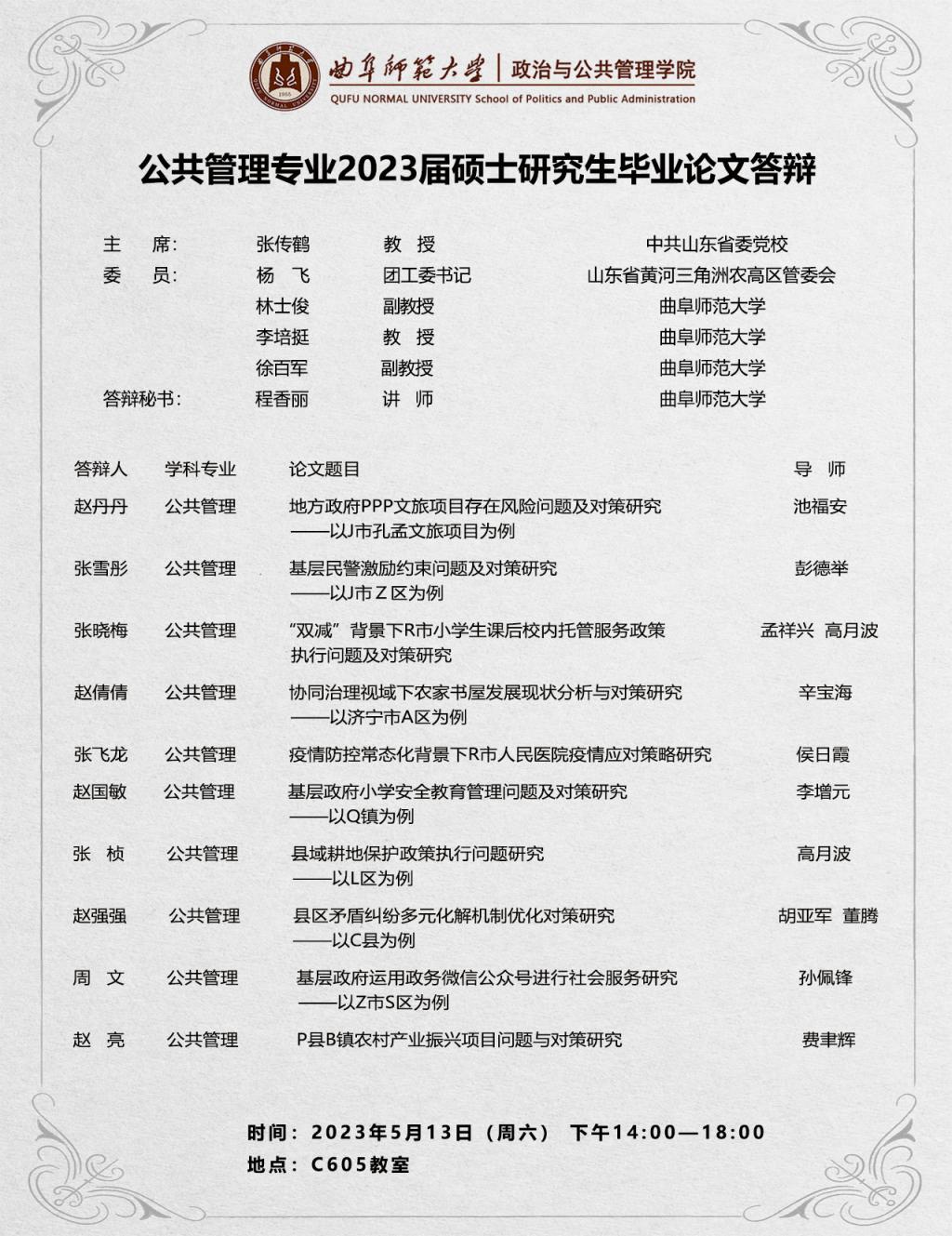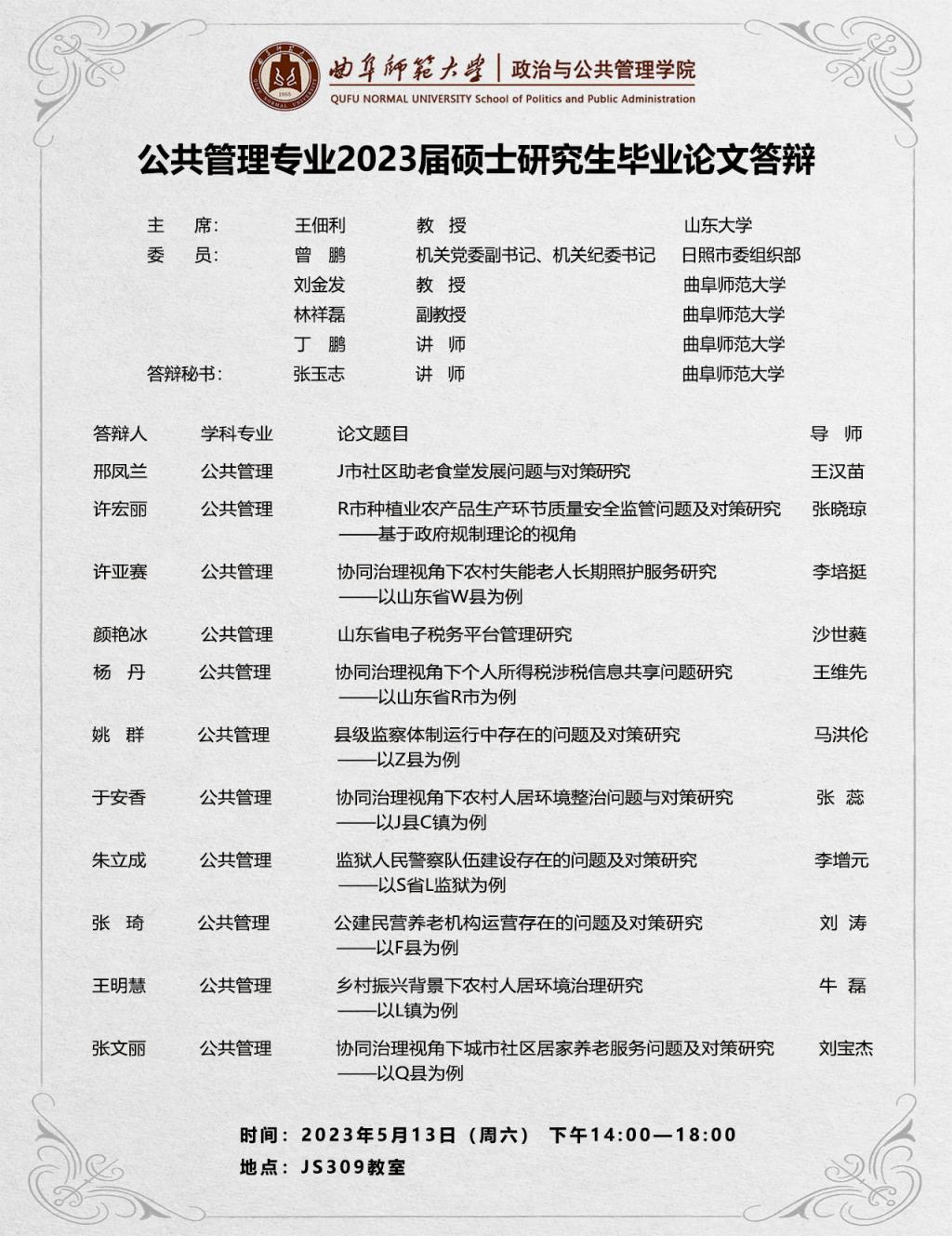 读漫屋 2023届公共管理硕士研究生学位论文答辩公告