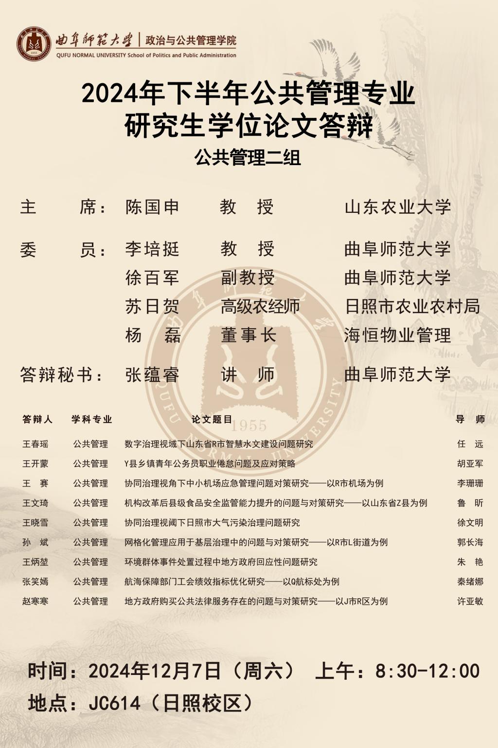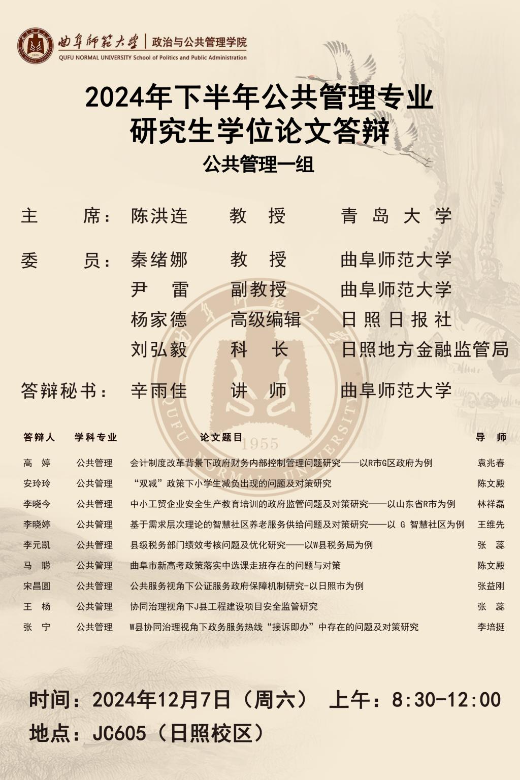 读漫屋 2024下半年公共管理专业研究生学位论文答辩公告