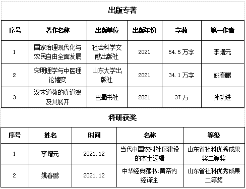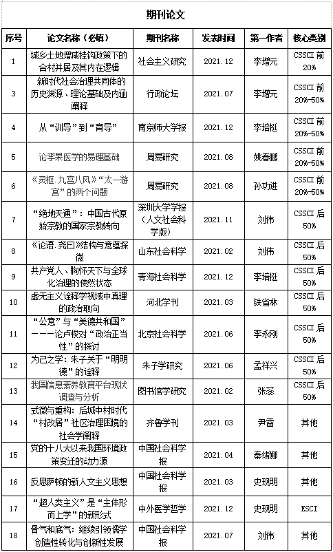 2021年度读漫屋 教师共获批国家社科基金项目1项,省部级项目3项;学院教师在《社会主义研究》、《行政论坛》、《周易研究》等CSSCI核心期刊发表学术论文18篇,出版专著3部,获得省级社科奖励2项。