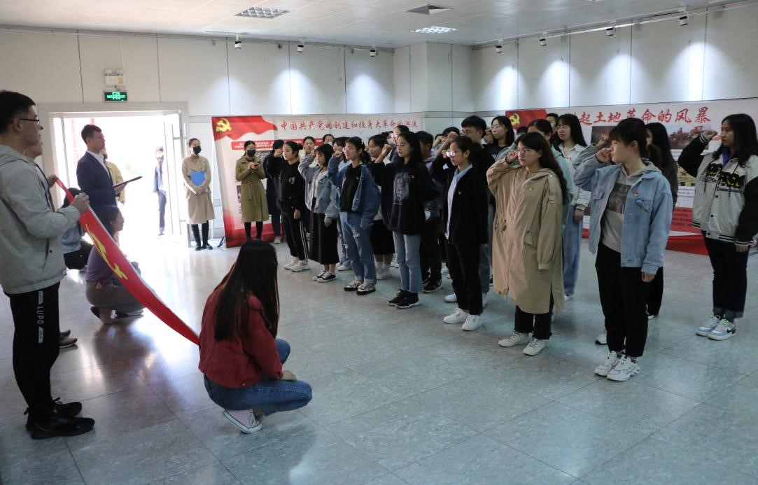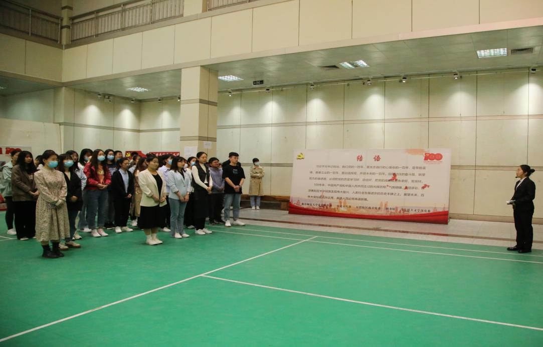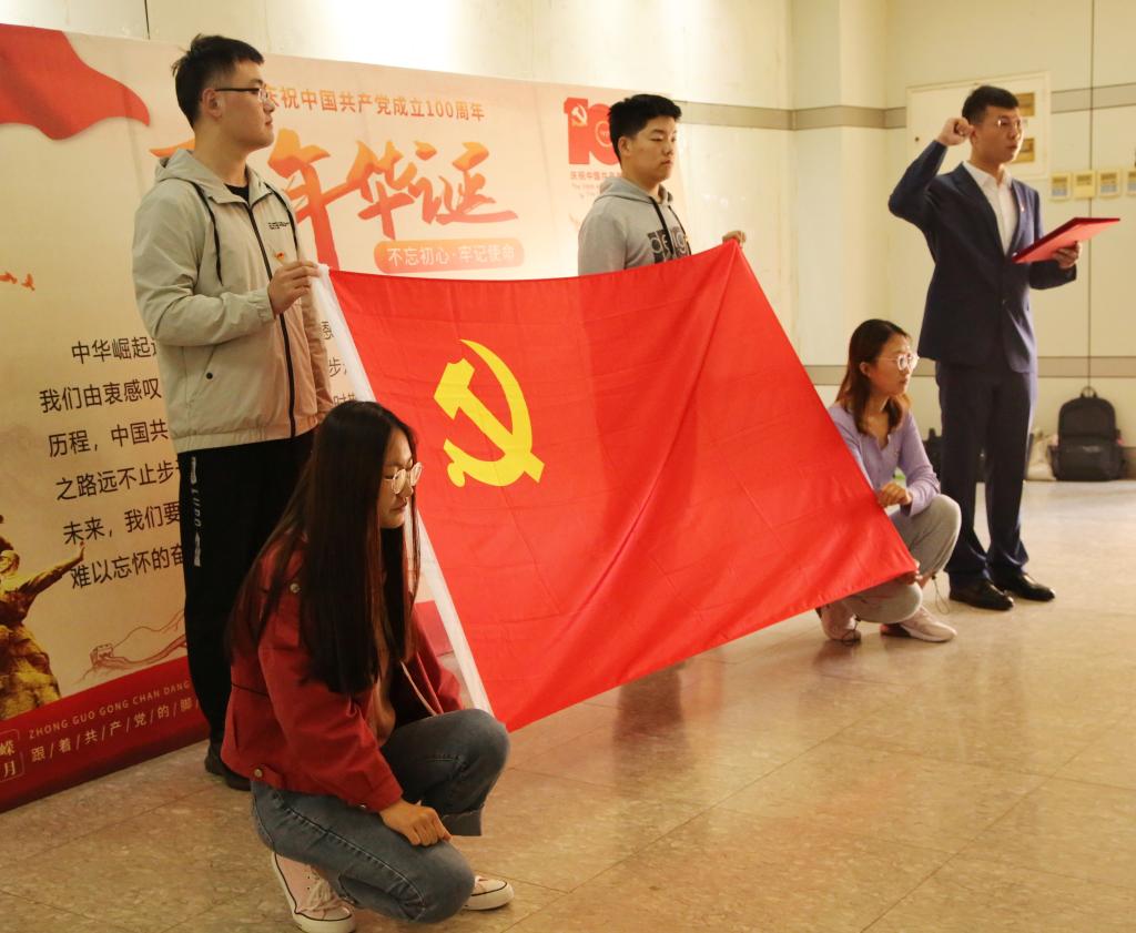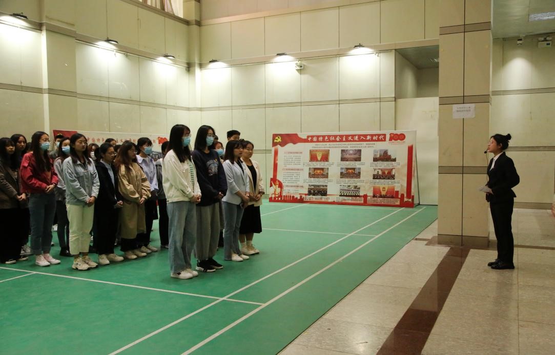 学生党支部主题党日:组织党员宣誓暨参观建党一百周年党史图片展活动于美术馆一层大厅举行。仪式由学生支部组织委员王元如主持,全体学生党员参加活动、庄严宣誓。