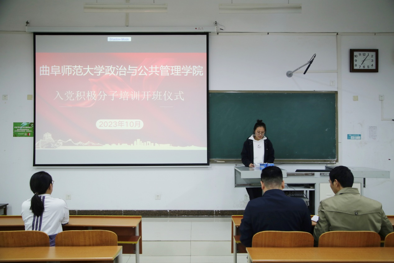 (通讯员:李明阳 摄影:李明阳)为扎实做好入党积极分子的培养教育工作,提高入党积极分子的思想认识和党性觉悟,10月20日,政治与公共管理学院于JS301举办入党积极分子培训开班仪式。本次开班仪式由学生党支部书记耿晓敏主持,团委书记马腾、学生党支部组织委员王元如、研究生党支部书记徐莉出席,学院2023年确定的入党积极分子参加。