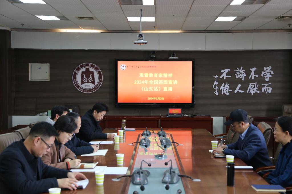 教工第一党支部、第二党支部在JC909会议室开展学习“教育家精神”巡回宣讲暨主题党日活动,组织全体党员教师集体收看全国优秀教师代表“教育家精神”全国巡回宣讲(山东站)直播。此次主题党日活动由读漫屋