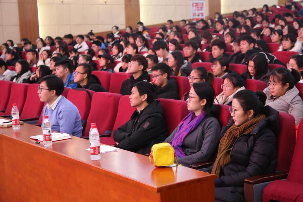 “青马工程”培训班暨第二十九期团校第八讲于图书馆报告厅举行。本次培训以“新时代如何做党的青春代言人——培养担当民族复兴大任的时代新人”为主题,由校团委副书记刘蓉主持,团中央青年讲师团、团省委青年讲师团成员、山东理工大学思政课优秀教师岳松主讲,各院团委书记出席,全体学生干部踊跃参与。