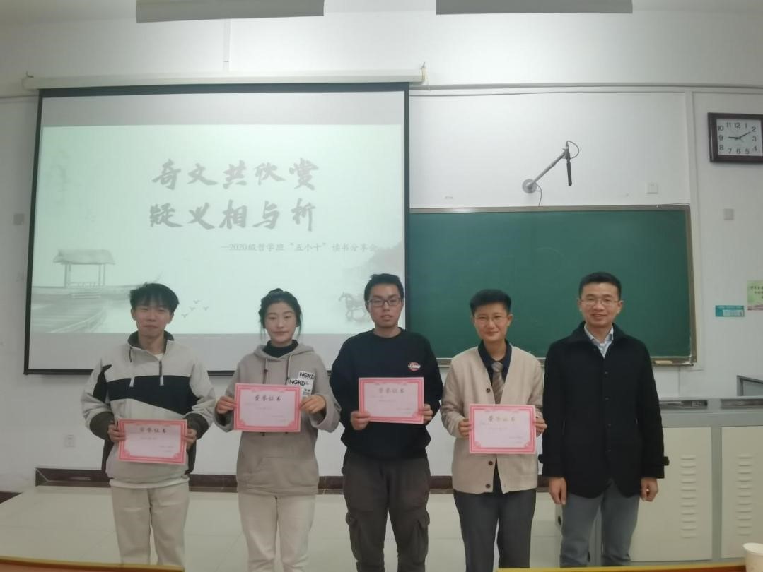 诵读古今经典,浸润少年心灵。为拓宽学生视野,扎实人生底色,2020级政治学与行政学一班、政治学与行政学二班和哲学班相继开展“五个十”阅读拓展计划评比活动,各组代表踊跃展示,分享阅读经验,交流名作思想,各位老师耐心倾听,给予学生指导,此次活动是政院学子求知若渴,乐善好学精神的生动体现,是全体政院师生携手共进的真切展示。