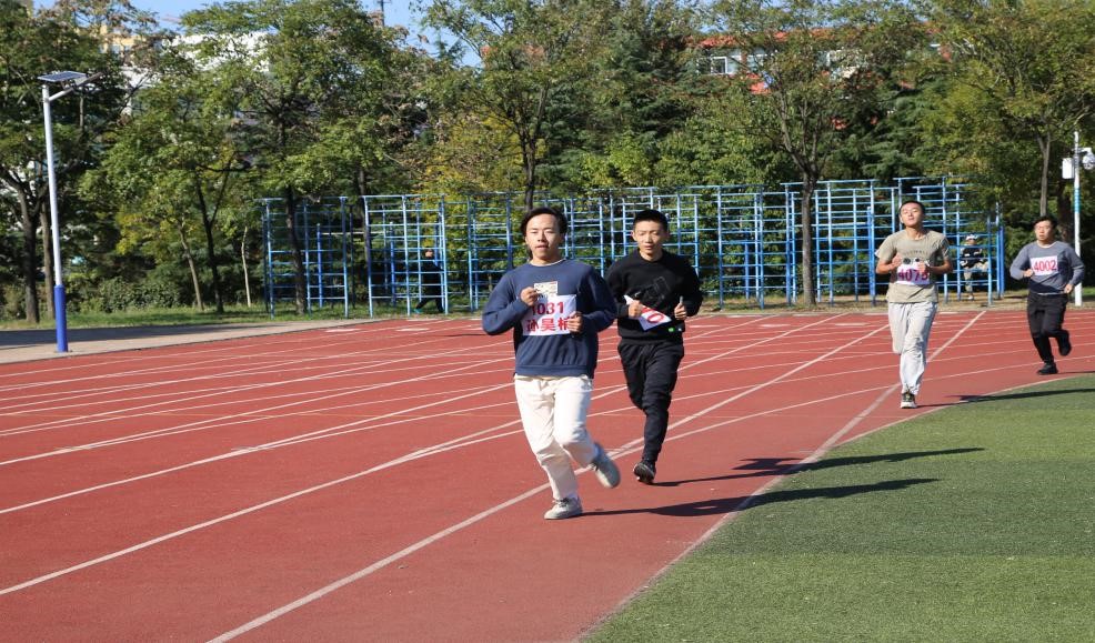 袅袅秋风,草木摇落霜。各学院代表队依次入场,全体同学庄严地唱响国歌,注视着国旗升起。升国旗仪式后,裁派员代表、运动员代表先后进行宣誓,表示将会恪守体育职业道德,遵守运动竞赛规则。动感的啦啦操舞蹈点燃了全场的热情,拉开比赛序幕。本次运动会共设置学生男子组、学生女子组、趣味项目三个组别,比赛内容包括100米、200米、400米、800米、1500米、4×100米接力、4×400米接力、跳高、跳远、铅球、踢毽子、跳绳、立定跳远等项目,运动员们本着“友谊第一,比赛第二”的赛场原则,在田径场上挥洒汗水,在观众席的声声呐喊助威中,超越自身的极限,用信念谱写青春华章。田径比赛中,运动员飞跃的身姿轻如燕;趣味比赛里,参赛人员被欢乐渲染;在主席台欢腾的歌声里一篇篇加油稿被传递朗诵,为运动健儿们带去鼓励与加油。最后,比赛在女子4×400的激烈角逐中落下帷幕。