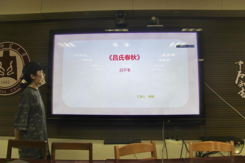 2020级张婉同学分享的书目是《吕氏春秋》。《吕氏春秋》是在秦国相邦吕不韦的主持下集合门客们编撰的一部杂家名著,成书于秦始皇统一中国前夕。此书以“道家学说”为主干,以名家、法家、儒家、墨家、农家、兵家、阴阳家思想学说为素材,熔诸子百家学说于一炉。
