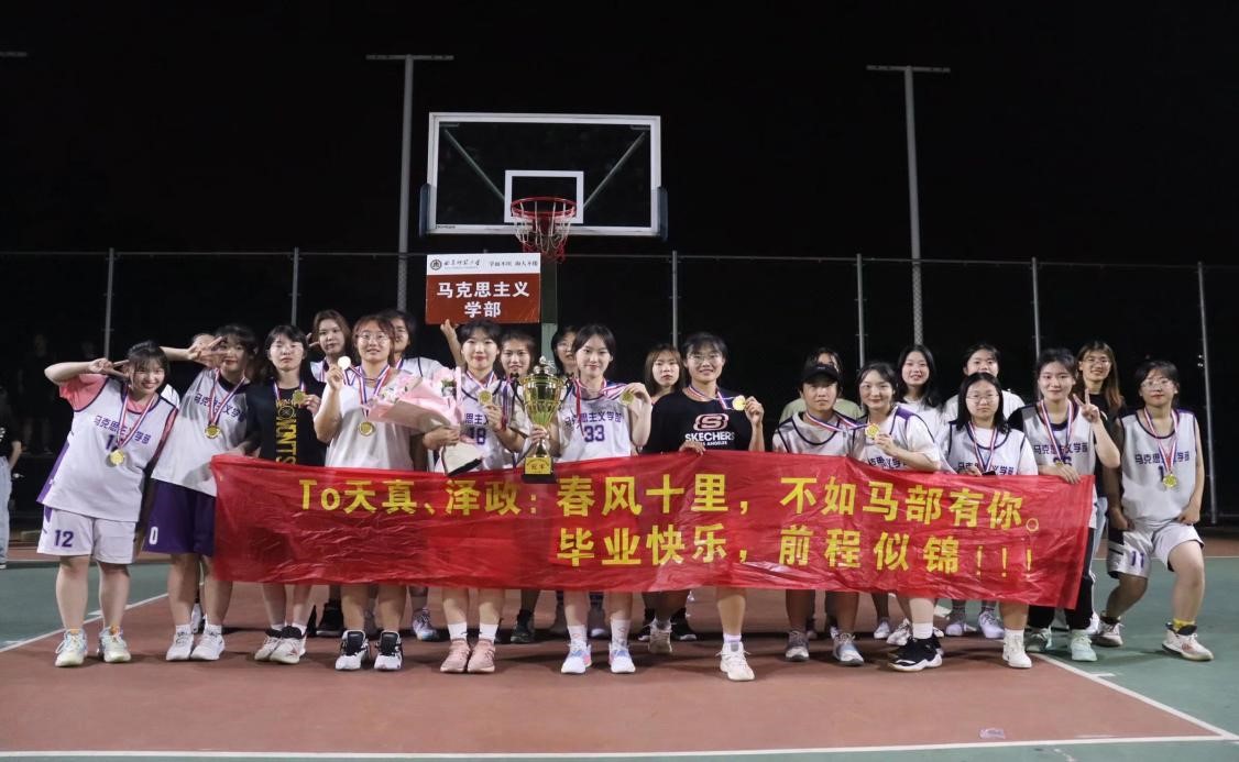 篮球毕业杯(女子组)决赛于东操篮球场举行,马克思主义学部女篮决胜传媒学院女篮,卫冕冠军,蝉联四连冠。