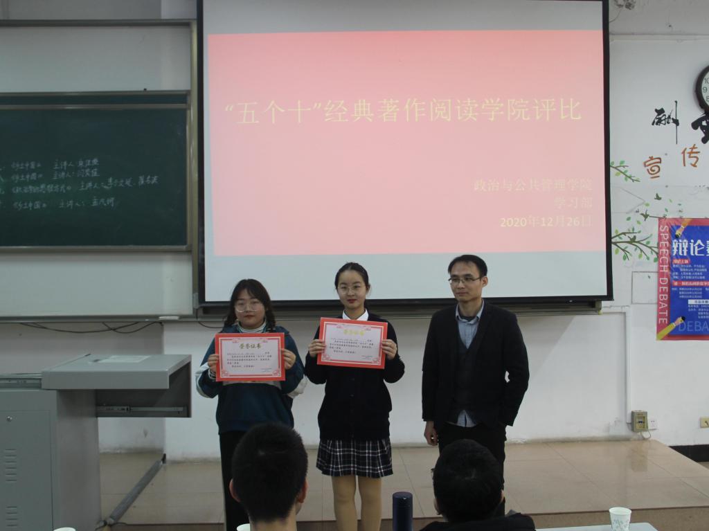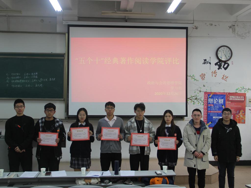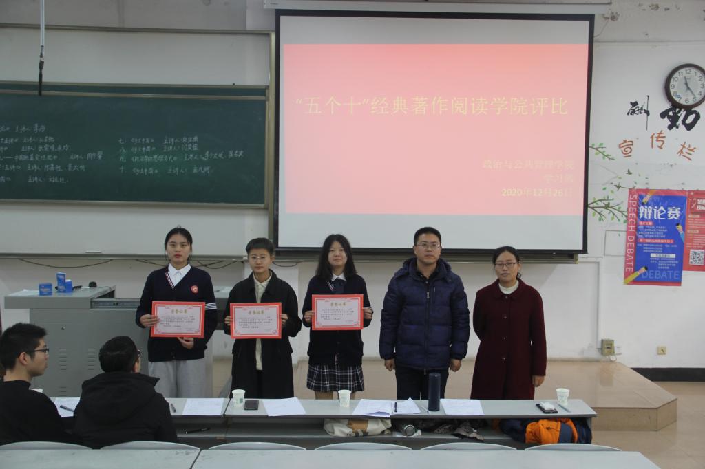 “五个十”经典著作阅读学院2020级评比活动于JA302举行。本次活动由院团委学生会学习部主办,教师代表程霞老师、孟祥兴老师、刘祥乐老师和学长代表王耀、王子豪、祝令硕应邀出席并担任评委,2020级同学踊跃参与。