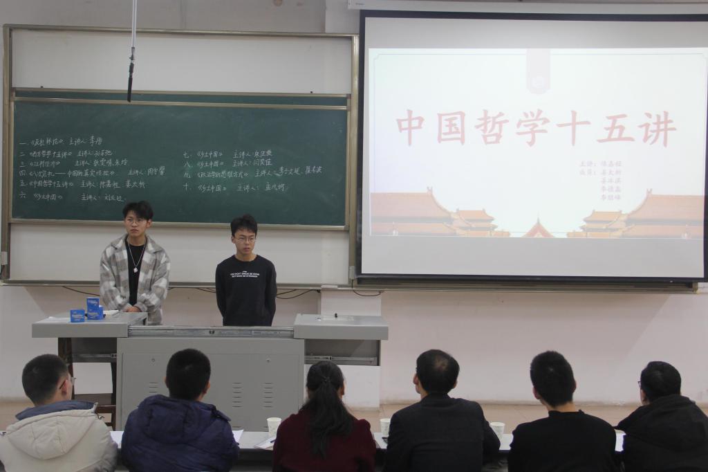 十组同学皆完成展示后,评委们相继做出点评,孟祥兴老师在肯定本次读书活动积极意义的同时,指出读书要学会正确地抓住主题;程霞老师强调在比赛过程中的PPT制作一定要清晰明了、吸引眼球;刘祥乐老师对于《西方哲学十五讲》进行了点评,肯定了其讲述形式的创新,但对于内容方面希望该小组成员能够进一步贴切本书主题。随后学长代表王耀、祝令硕、王子豪对于活动进行总结发言,并就讲演方式等方面为同学们提供相关切实可行的解决措施。