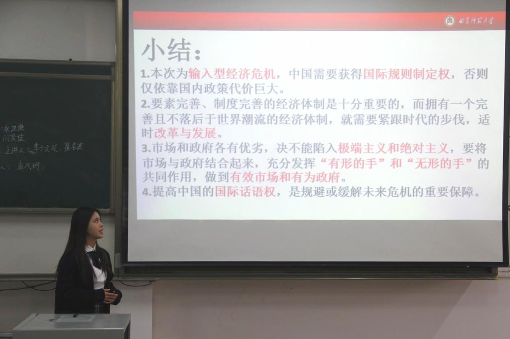 活动伊始,主持人向与会老师同学阐释读书对于大学生未来发展的重要意义,在简明扼要地介绍比赛规则之后,活动正式开始。本次活动共有十个小组展示阅读成果,分别讲述《乡土中国》、《西方哲学十五讲》、《江村经济》等经典著作。各组精心准备所展示PPT,立足于所读书目的中心思想,联系本专业的知识,从全书梗概、写作背景、对其独到见解和理论联系实际的现实观点等多个方面进行全面剖析,即使对于同一部著作,各小组的展示风格以及读书体会也各不相同,思维观念的碰撞引起阵阵掌声。