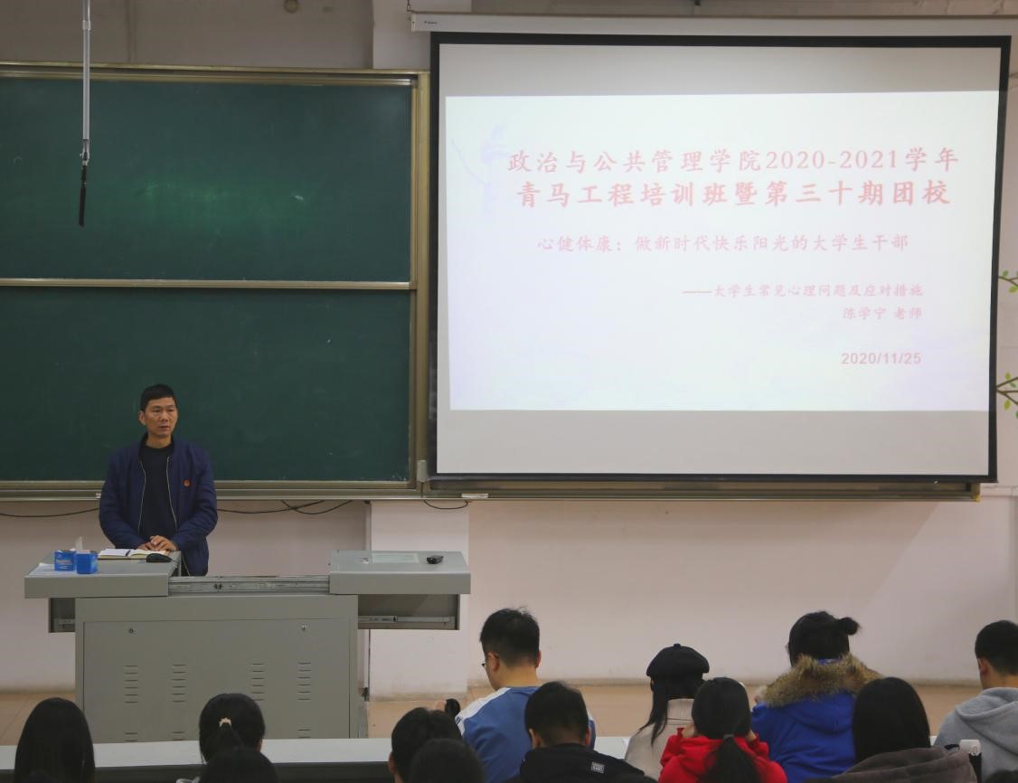 2020—2021学年青马工程培训班暨第三十期团校第二讲于JA302举行,本次培训会以“心健体康:争做新时代快乐阳光大学生干部”为主题,由读漫屋