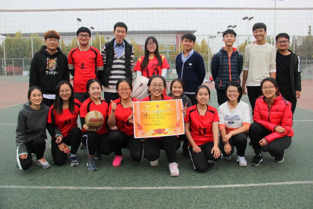 第四届“迎新杯”女排季军争夺战在东操场排球场打响,我部女排对阵工学院女排。