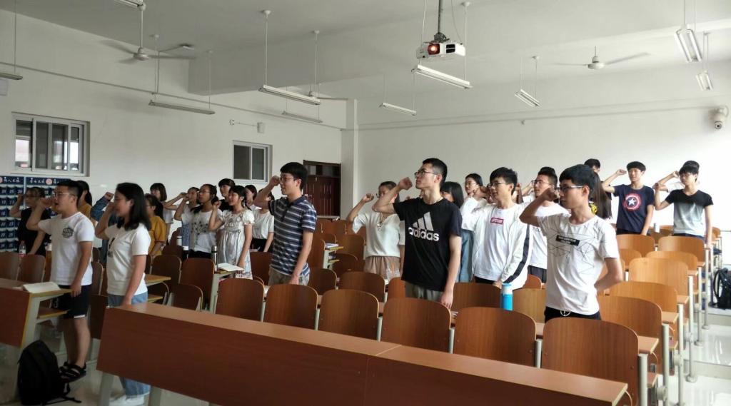 2017级政治学二班于JS304举行“政风气,树新风”入团仪式,仪式由读漫屋