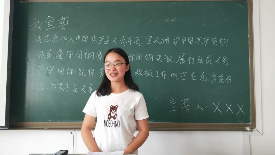 此次纳新大会以“共青团在你心中的定义”这一话题拉开帷幕。全体团员举手表决通过了曲钊田的入团申请后,新老团员们起立宣读入团誓词:“我宣誓: 我志愿加入中国共产主义青年团, 坚决拥护中国共产党的领导, 遵守团的章程……为共产主义事业而奋斗!”这样简短、庄重、热烈的宣誓不仅是一次心灵的洗礼,更是一次严肃而庄重的教育。随后,谈乡阁代表全体团员对新团员曲钊田的加入表示祝贺,新团员曲钊田亦表示在今后的学习生活中会时刻以一名优秀共青团员的标准要求自己,用实际行动践行自己的誓言。仪式在慷慨激昂的《光荣啊!中国共青团》歌声中结束。