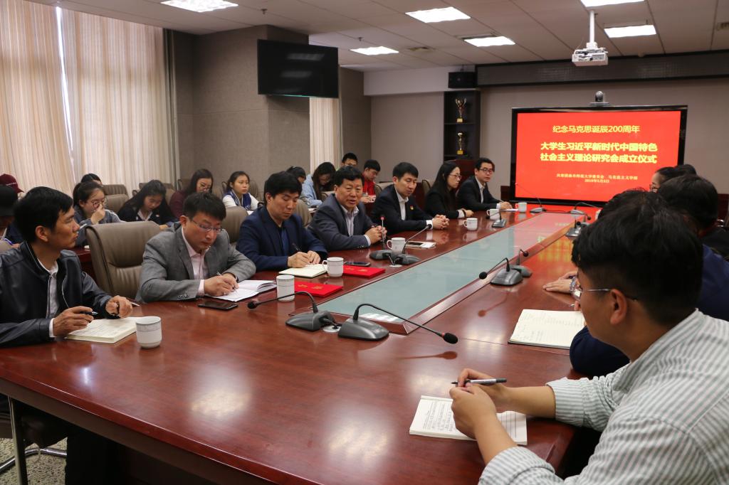 大学生习近平新时代中国特色社会主义思想研究会成立仪式于马克思主义学部会议室隆重举行。仪式由团委宣传部长马腾主持召开,马克思主义学部党委书记张立兴,校团委书记宋国栋,马克思主义学部党委副书记宋钧文、孙国庆,校团委副书记刘蓉以及读漫屋