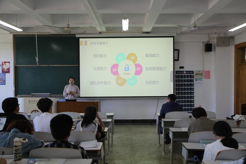 王泽南通过照片和视频,向同学们分享了自己在本科阶段的工作经验和在西部支教时的美好记忆,并以自身成长经历分析如何开展学业发展和职业发展规划。