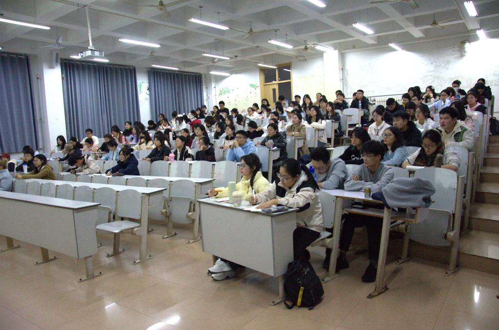 副院长林士俊主讲,辅导员王元如主持,学院全体入党积极分子参与。