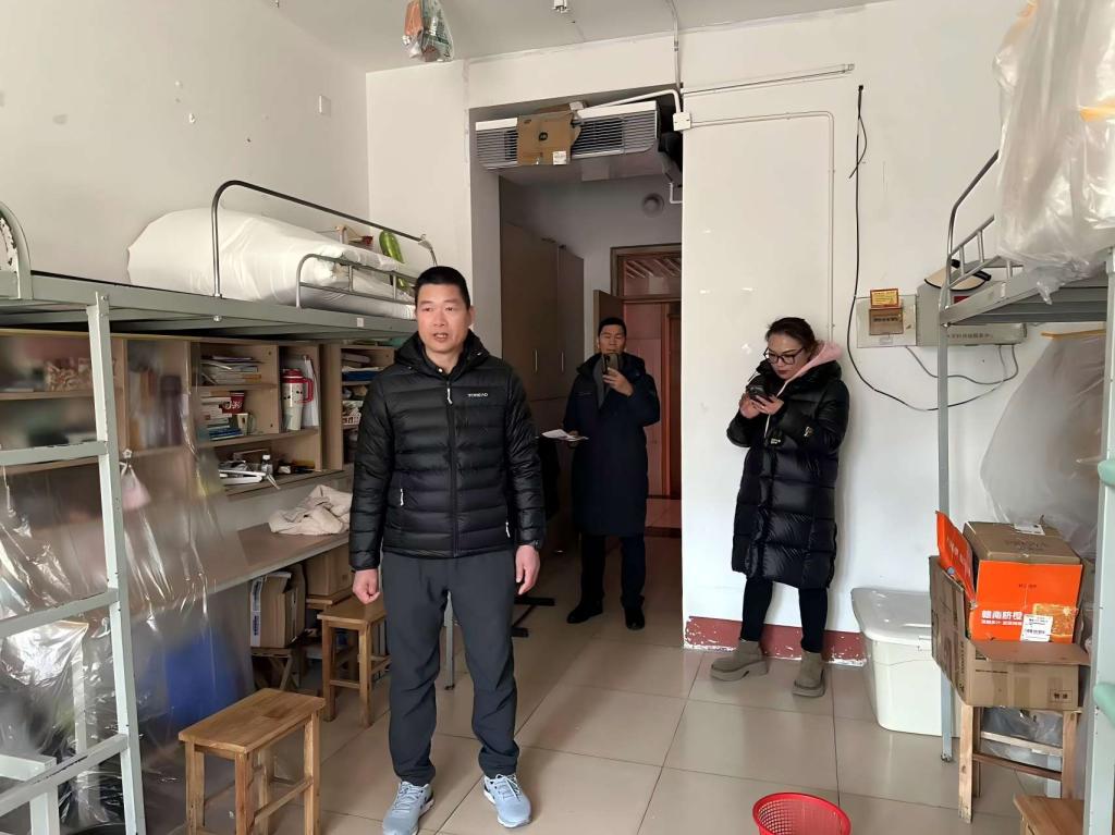 为加强宿舍安全管理,确保学生离校后宿舍环境的安全与稳定,1月10日下午,学院党委副书记张忠凯带领全体辅导员到学生宿舍进行寒假离校安全检查。